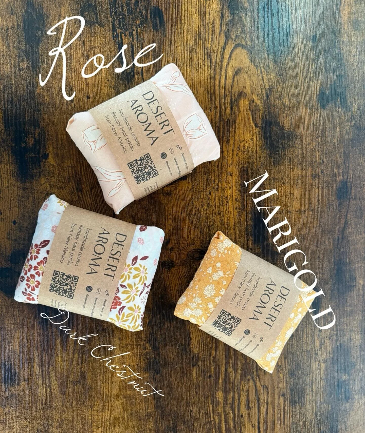 Heat and cooling packs that are infused with essential oils, or simply come with organic material such as: dehydrated flowers, herbs, natural grains, rice or seeds. These packs release heat or cooling temperatures which bring relief, relaxation, and comfort to the physical body.